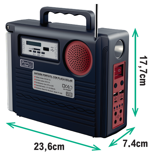 Ya sea en casa, en el campo o durante una emergencia, la Batería Portátil con Placa Solar te brinda energía, luz y sonido siempre que lo necesites. ¡No dependas de la red eléctrica nunca más!