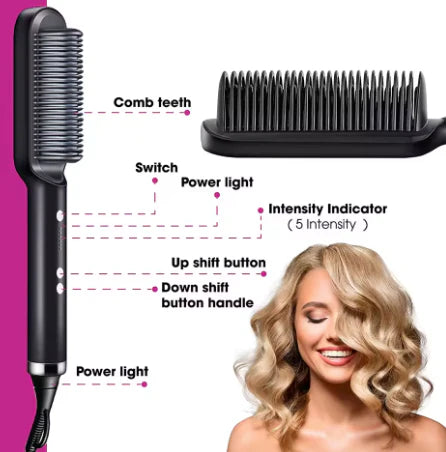 • ✅ 5 ajustes de temperatura (130°C–200°C) para adaptarse a cualquier tipo de cabello: fino, grueso, rizado, liso o teñido.